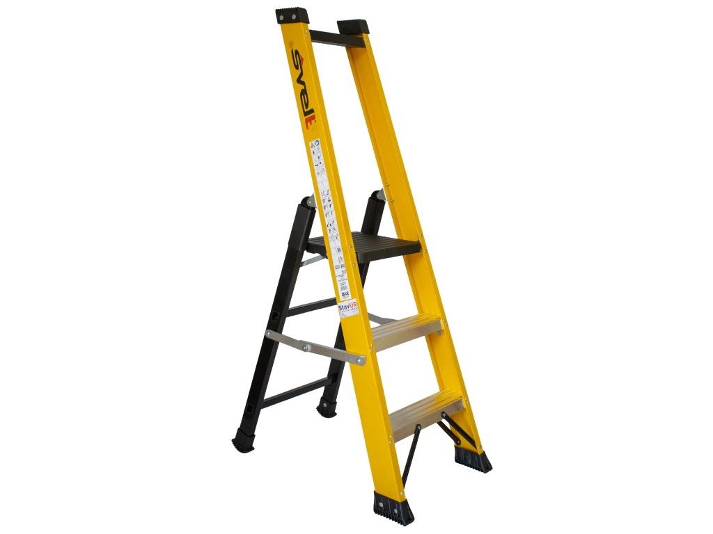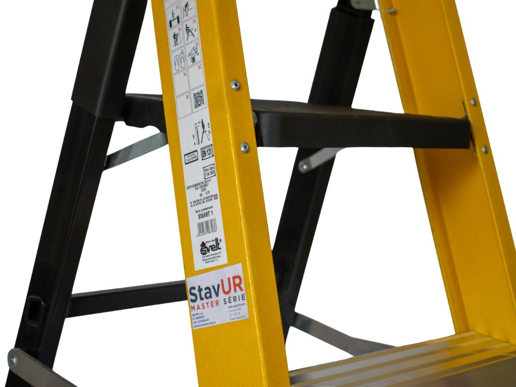SMART 1 Sklolaminátové izolované schůdky - EN 50528Jednostranné sklolaminátové schůdky SMART1 jsou určeny pro bezpečnou práci v prostředí s nízkým napětím – ideální jako schůdky pro elektrikáře a techniky pracující v blízkosti kabelů, zásuvek nebo jiných elektrických zařízení. Díky konstrukci z vysoce odolného sklolaminátu poskytují schůdky výbornou elektrickou izolaci a splňují přísnou normu CEI EN 50528, která je určena pro práce v blízkosti elektrických zařízení (do 1000 V AC a 1500 V DC). Zkoušky probíhají při napětí až 36 000 V po dobu 1 minuty, což potvrzuje jejich spolehlivost a bezpečnost při zásazích v energetice či údržbě rozvodů. Nosnost těchto izolovaných schůdky je 150 kg dle normy EN 131. Přední kolejnice jsou vyrobeny z robustních sklolaminátových C-profilů o rozměrech 82 x 30 mm, zadní pak z hliníkových profilů s povrchovou úpravou. Tyto schůdky kombinují odolnost a praktičnost – mají protiskluzové hliníkové stupně o hloubce 8 cm s výztuhami, rozteč mezi stupni je 25 cm. Nechybí ani polypropylenová plošina o rozměru 25,5 x 28 cm. Pro zvýšení bezpečnosti jsou vybaveny ocelovými rozpěrami proti samovolnému složení, výztuhami pod stupni a ergonomickými gumovými patkami pro spolehlivý a stabilní kontakt s povrchem. |