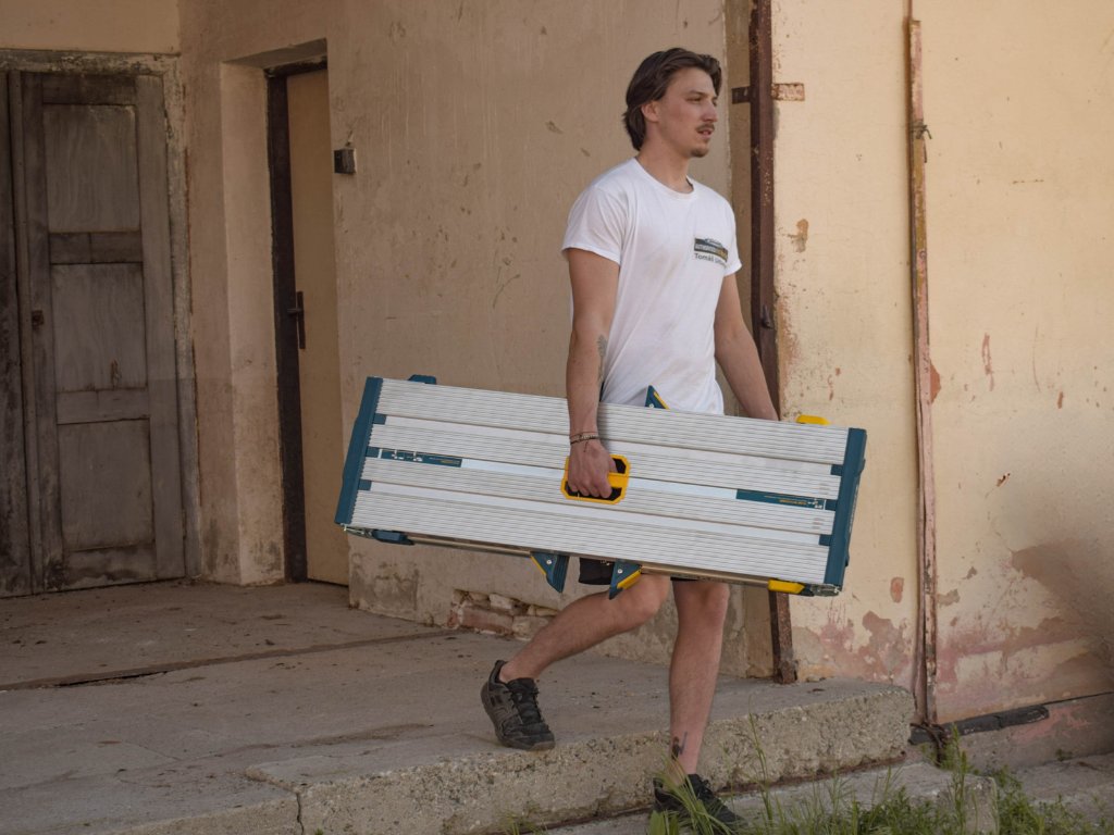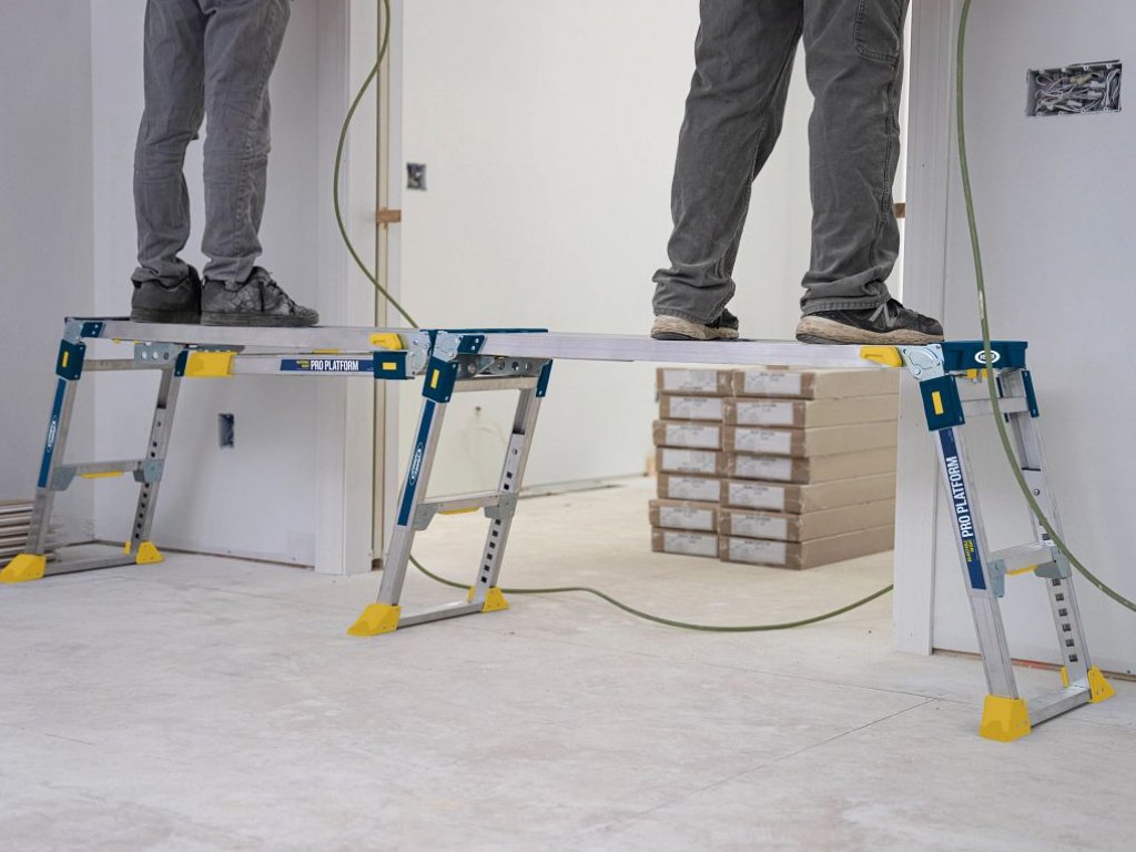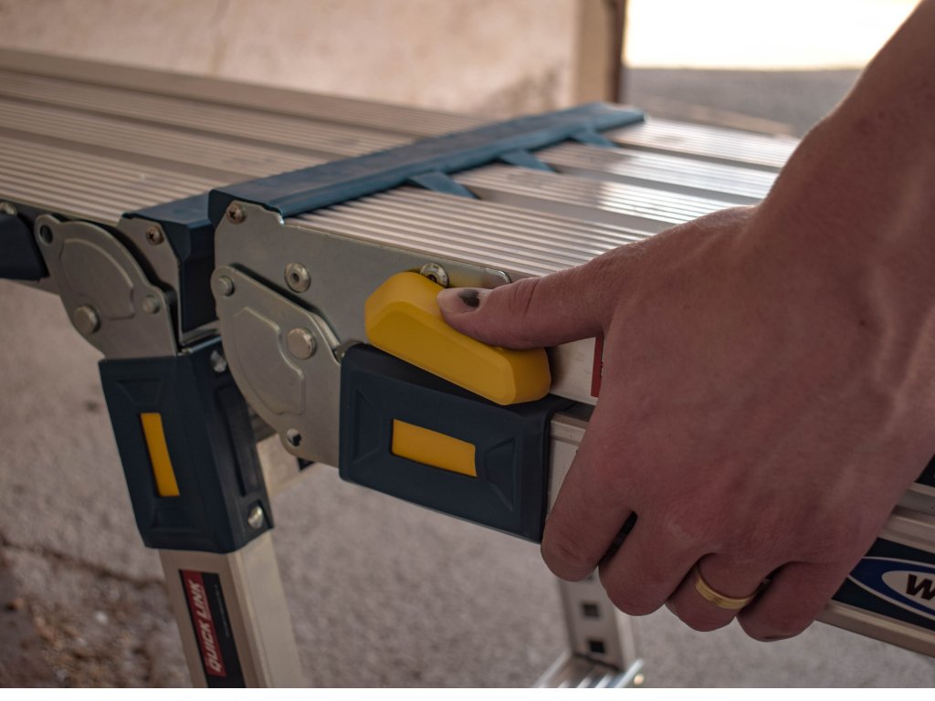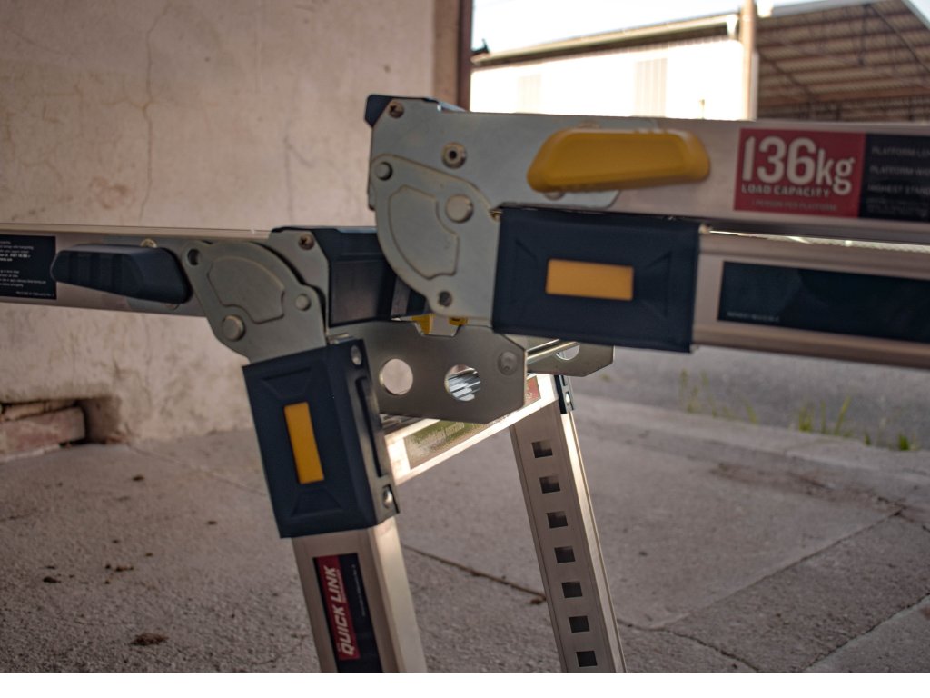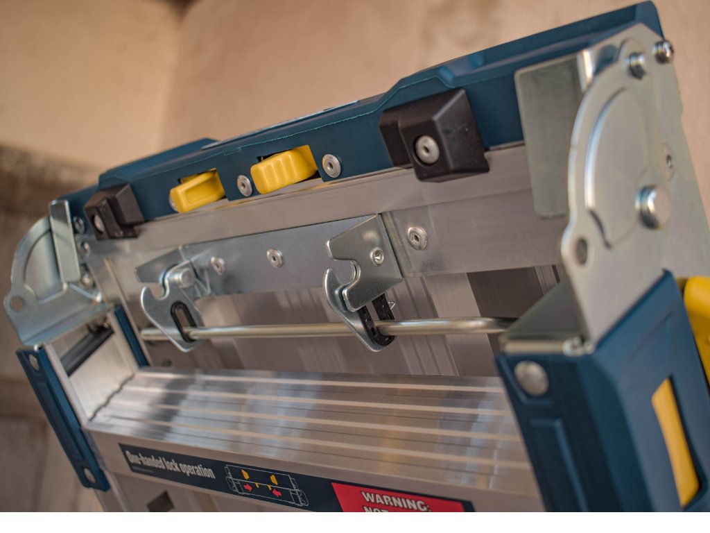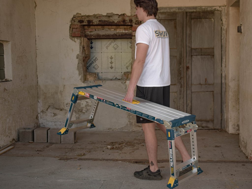 Plošina je vyrobena z lehkého, ale pevného hliníku, který zajišťuje odolnost a dlouhou životnost.Tato skládací pracovní plošina je vyrobena z lehkého, ale extrémně pevného hliníku a nabízí nosnost až 136 kg, takže bez problémů zvládne i náročné profesionální použití. Velké teleskopické nohy pokryté gumou zvyšují stabilitu a chrání podlahy před poškozením. Vroubkovaná nášlapná plocha o rozměrech 35 × 116 cm zajišťuje bezpečné a pohodlné stání i při náročné práci. Samo-zacvakávací systém nohou garantuje, že plošina zůstane pevně otevřená či složená podle potřeby.