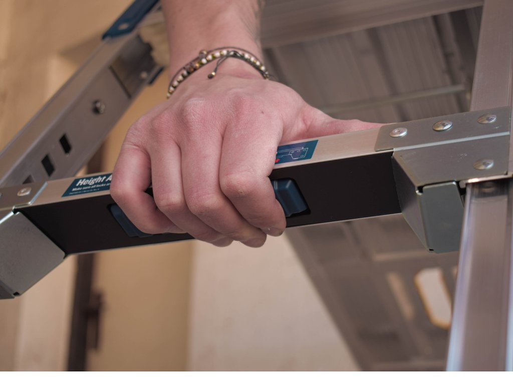 Madlo Easy-Grab™ a jednoduchý systém teleskopických nohou umožňují pohodlné přenášení a rychlé nastavení plošiny jedním pohybem. Po dokončení práce se plošina složí do kompaktních 11 cm, takže se snadno skladuje a přepravuje i v osobním voze. Díky kombinaci pevné konstrukce, flexibilní výšky a intuitivní manipulace je teleskopická nášlapná plošina Werner AP2030L spolehlivým, bezpečným a komfortním nástrojem pro profesionály i kutily.